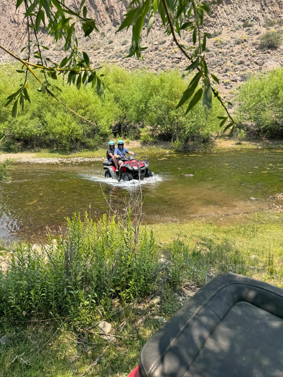 Tendremos de una charla instructiva y de seguridad. Nos pondremos los cascos y guantes y emprenderemos nuestra aventura. Vamos a seguir a nuestro guía por 1:30 hrs, por un circuito donde vadearemos el rio Pichi Leufu haciendo diferentes paradas para sacar fotografías. 🥐Llegaremos a una cabaña donde disfrutaremos un desayuno/merienda completo a la orilla del río.🫖